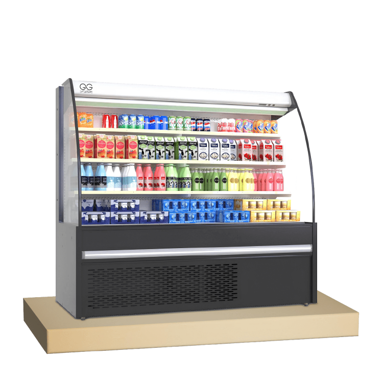 מקרר ויטרינה / חלביה פתוחה, בעל חזית עגולה.