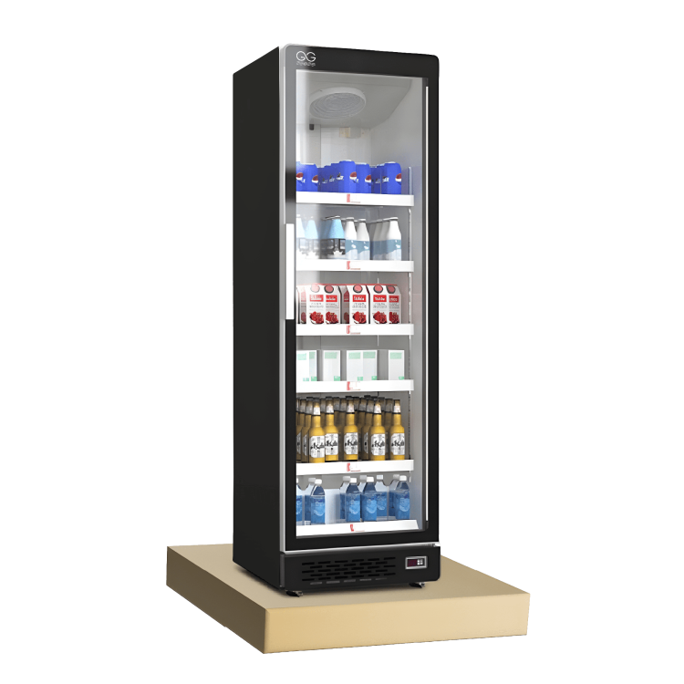 מקרר ויטרינה / חלביה פתוחה, בעל חזית עגולה.